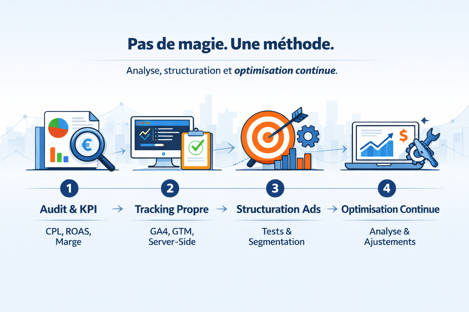 « De la PME locale aux acteurs nationaux, nous structurons l’acquisition et la data pour scaler durablement. »